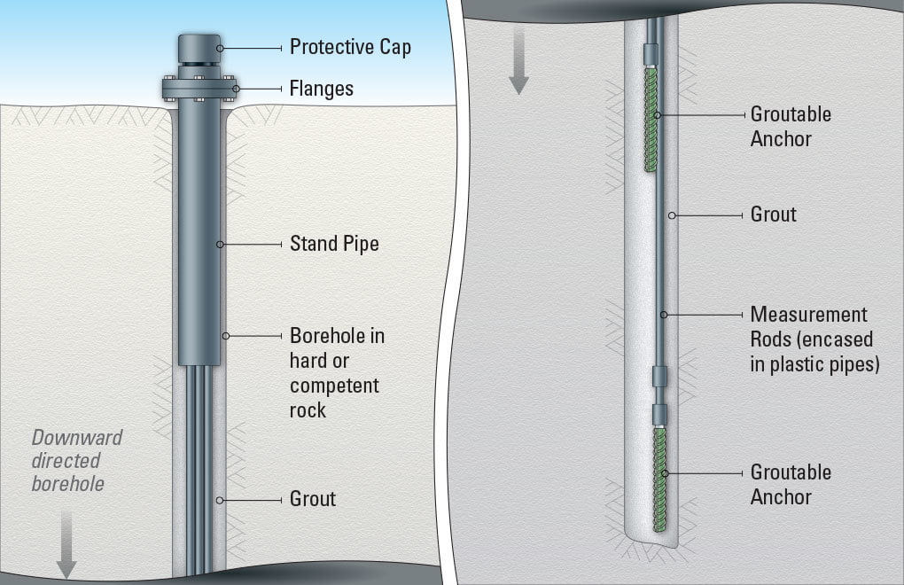 Model A-3 Multiple Point Rod Extensometer adalah desain yang disukai untuk pemasangan di lubang bor yang diarahkan ke bawah yang mudah diisi dengan nat semen. Hingga delapan jangkar dapat dipasang, pada berbagai kedalaman, dalam lubang bor berdiameter 76 mm yang memberikan kemampuan untuk menemukan beberapa bidang kegagalan dan zona pergerakan.
